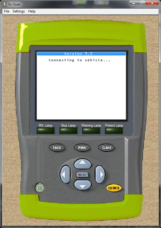 Step 1: Start the software - You will see the connecting screen appear like the image below. If you are using an Ez-TAP from XscapeEz, the software will automatically connect to the vehicle. If you are using any other RP1210 adapter, a box will appear asking you to choose your device